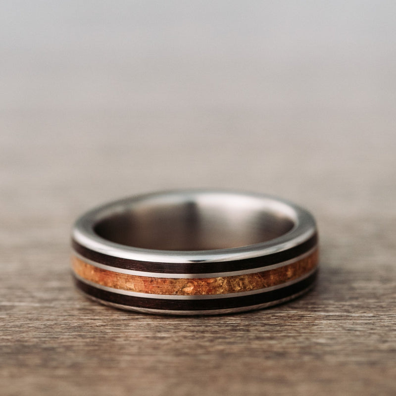 Custom Men S Titanium Wedding Band With Rosewood Fossilized Amber Inlays Size 8 5 6mm Wide Rustic And Main